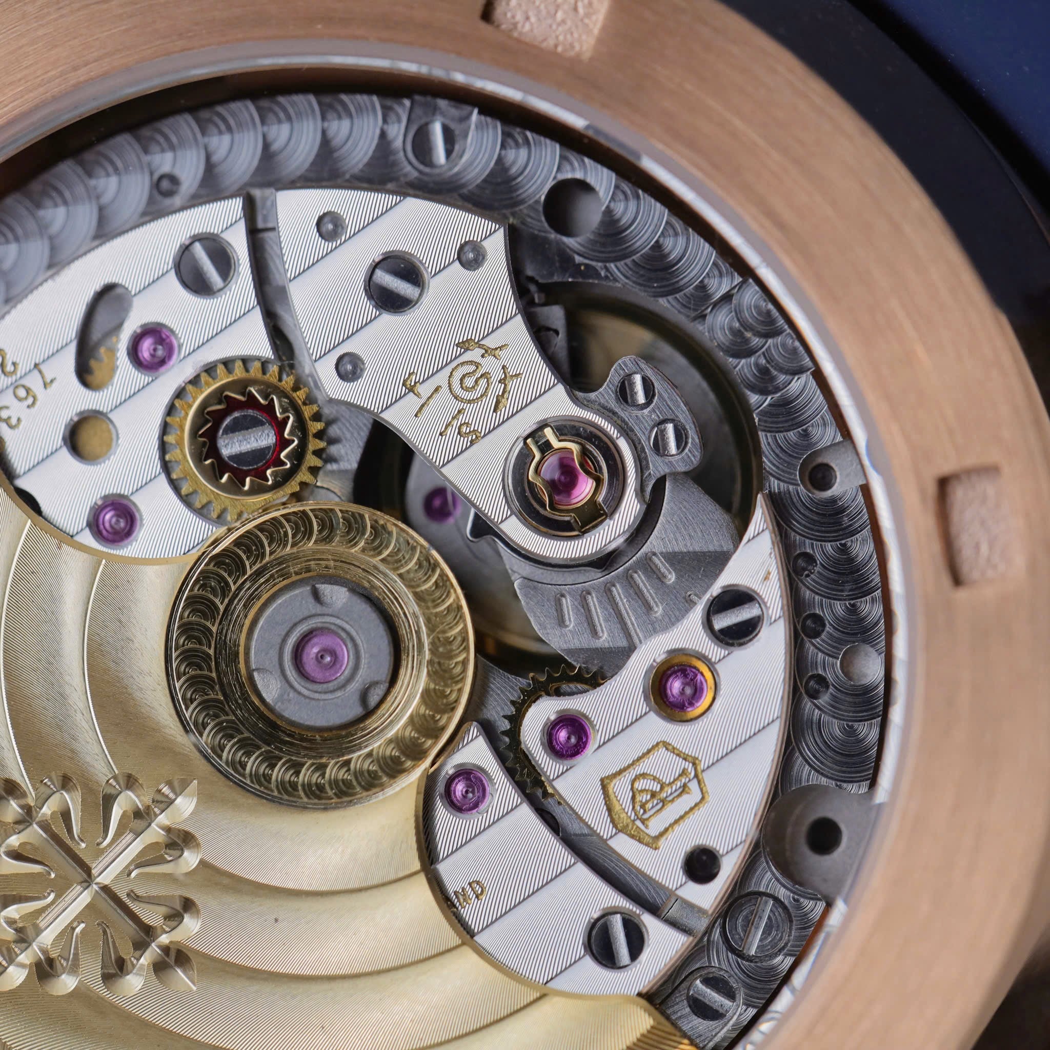 Self-winding movement with Co-Axial escapement. Certified Master Chronometer, approved by METAS, resistant to magnetic fields reaching 15,000 gauss. Free sprung-balance with silicon balance spring, automatic winding in both directions. Rhodium plated finish with Geneva waves in arabesque.